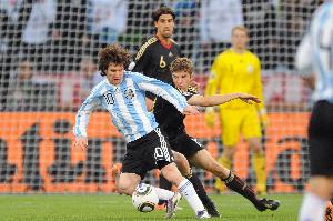 2010年南非世界杯,德國隊在1/4決賽中4-0大勝阿根廷,比賽中梅西在一次停球時手球在先,隨后皮球彈到穆勒手上,梅西向裁判投訴穆勒手球,裁判向穆勒出示黃牌。這導(dǎo)致穆勒累積黃牌停賽錯過對陣西班牙的半決賽,最終德國隊在半決賽中0-1不敵西班牙被淘汰。