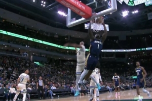 GIF-錫安胯下突破殺入內(nèi)線 迎著防守上演折疊暴扣