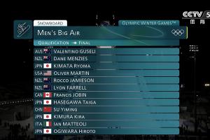 體育資訊02月06日訊 米蘭冬奧會(huì)單板滑雪男子大跳臺(tái)預(yù)賽三輪全部結(jié)束,衛(wèi)冕冠軍蘇翊鳴以第4名晉級(jí)決賽。葛春宇、楊文龍遺憾無緣決賽。