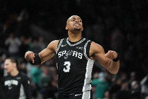 上半場(chǎng),馬刺球員凱爾登·約翰遜高效發(fā)揮,替補(bǔ)11分鐘7投5中,罰球2中2拿到12分5籃板2助攻1搶斷1蓋帽,正負(fù)值+2。