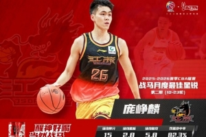 【2025-2026賽季戰(zhàn)馬第2期月度最佳星銳球員——龐崢麟】恭喜江蘇肯帝亞籃球俱樂(lè)部龐崢麟獲得2025-2026賽季CBA聯(lián)賽第2期“戰(zhàn)馬月度最佳星銳球員”!在常規(guī)賽10-23輪的比賽中,龐崢麟出戰(zhàn)14場(chǎng)。在他場(chǎng)均出場(chǎng)的32分鐘里,能夠得到15分、2.8籃板、5.8助攻的數(shù)據(jù),罰籃命中率82.3%。龐崢麟在本月度4次得到20+的單場(chǎng)得分,其中包含一場(chǎng)26分、8籃板、13助攻的“準(zhǔn)三雙”數(shù)據(jù)。