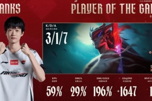 體育資訊2月6日訊 Shanks永恩打出3/1/7戰(zhàn)績,斬獲AL對陣BLG第二局MVP。