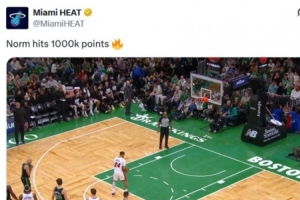 比賽進(jìn)行到第二節(jié),鮑威爾通過(guò)罰球得到熱火生涯第1000分,熱火官方推特隨后發(fā)文祝賀,卻不慎鬧出烏龍——將“1000分”誤寫(xiě)成了“100萬(wàn)分”??。