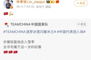 加油!林孝埈轉(zhuǎn)發(fā)中國代表團亮相冬奧開幕式照片: