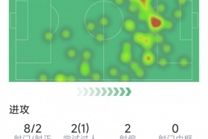 體育資訊2月7日訊 在本輪英超,曼聯(lián)2-0擊敗熱刺,以下為B費本場數(shù)據(jù):
