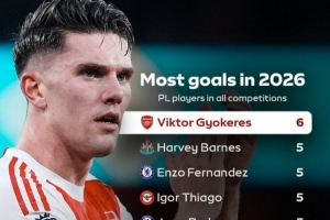 英超球員2026年各項賽事進球榜:約克雷斯6球獨占榜首,恩佐等5球