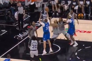 GIF——文班亞馬驚天大帽弗拉格 后者攤手抱怨干擾球