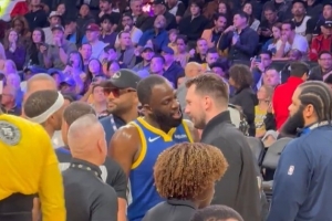 GIF-追夢(mèng)場(chǎng)邊狂噴東契奇 之后兩人全笑了