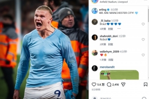 在社交媒體上,哈蘭德曬出了自己的怒吼慶祝照,并寫道:我們是曼城!
