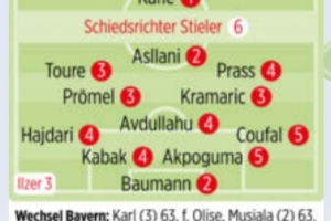 體育資訊2月9日訊 德甲第21輪比賽,拜仁主場5-1擊敗霍芬海姆,德國媒體《圖片報》對兩隊球員進行了評分。