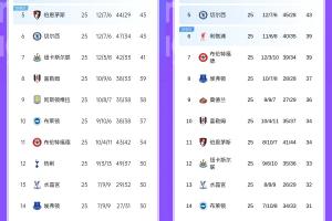 英超前六積分對(duì)比上賽季同期:
