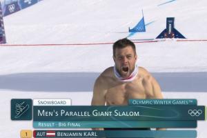 情緒釋放!奧地利選手衛(wèi)冕單板滑雪男子平行大回轉(zhuǎn)冠軍,脫衣慶祝
