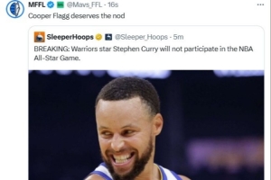體育資訊2月10日訊 勇士主帥科爾今日賽前宣布,庫(kù)里此后對(duì)陣馬刺的比賽也不會(huì)出戰(zhàn),另外庫(kù)里還確定將缺席今年的全明星比賽。