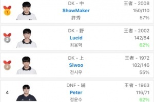 體育資訊2月10日訊?最新韓服排行榜,DK上中野包攬前三,Peter來(lái)到第四,Peyz來(lái)到第五啦!