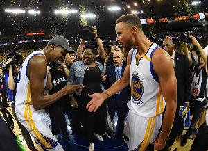 2016年夏天,杜蘭特選擇空降加盟剛剛取得歷史最佳常規(guī)賽戰(zhàn)績的金州勇士,隨后助隊獲得兩連冠,杜蘭特均摘取了FMVP。