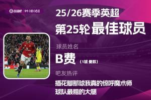 2025-2026賽季英超火熱進行中,體育資訊和咪咕體育聯(lián)合發(fā)起每輪英超最佳球員評選活動!第25輪評選結(jié)果已經(jīng)出爐,曼聯(lián)中場B費當選!曼聯(lián)球員連續(xù)5輪斬獲此獎項,此前4輪分別是舍什科、B費、庫尼亞、卡塞米羅。