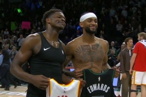 賽后,愛(ài)德華茲與前隊(duì)友亞歷山大-沃克互換球衣并合影。