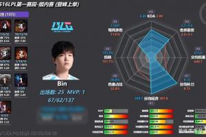 體育資訊2月10日訊 粉絲制作第一賽段組內(nèi)賽上單雷達(dá)圖,Bin吃最多的經(jīng)濟(jì)打最少的傷害!