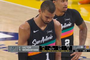 文班近5場場均僅打28.7分鐘 砍26.4分11.2板2.8帽 命中率57%