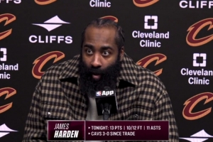 體育資訊2月12日訊 NBA常規(guī)賽,騎士138-113大勝奇才,賽后哈登接受采訪。