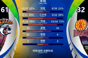 體育資訊2月12日訊 CBA俱樂部杯決賽,上海半場(chǎng)61-32領(lǐng)先山西。