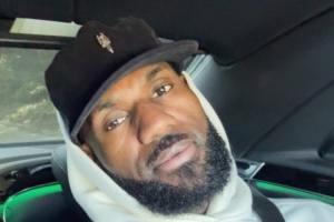 詹姆斯曬出了一張他乘車前往比賽球館的自拍照。