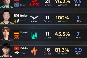 LPL第一賽段常規(guī)賽登峰組上單數(shù)據(jù):前15經(jīng)濟(jì)差Bin第一257
