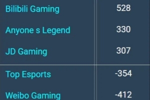 LPL第一賽段常規(guī)賽登峰組隊(duì)伍前15分鐘經(jīng)濟(jì)差:BLG第一528