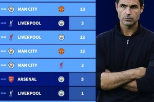 22/23賽季,阿森納領(lǐng)先曼城5分