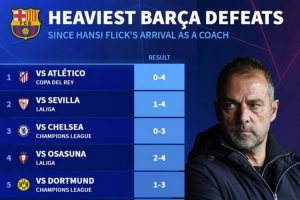 德轉(zhuǎn)列弗里克時(shí)代巴薩最大比分輸球: