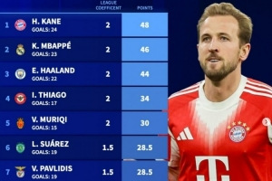 體育資訊2月14日訊 德轉(zhuǎn)盤(pán)點(diǎn)了截至目前歐洲金靴獎(jiǎng)積分情況,其中凱恩、姆巴佩與哈蘭德排名前三且差距很小,具體如下: