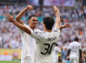 體育資訊2月15日訊 西甲第24輪,皇家馬德里主場迎戰(zhàn)皇家社會,比賽第6分鐘,阿諾德精妙傳中助攻,貢薩洛破門,皇馬1-0領(lǐng)先。