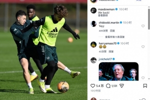 體育資訊2月15日訊 阿森納小將道曼今天更新Instagram,曬照慶?;貧w訓(xùn)練。