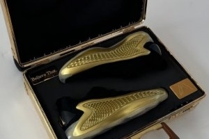 這雙球鞋是為愛德華茲奧運奪冠打造的金牌配色AE 1 Low,而庫里這雙還在側(cè)面加上了庫里美國隊的號碼4號、后跟提環(huán)上則是有庫里名字“WSC”。