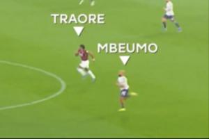 在下半場尾聲階段,曼聯前場失誤西漢姆聯形成反擊,此時回防的姆伯莫與特勞雷上演直線沖刺競速,最終姆伯莫的速度稍占上風。