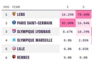 但根據(jù)opta的預(yù)測(cè),巴黎奪冠的概率仍然高達(dá)83.09%,朗斯奪冠概率僅有16.24%。巴黎是五大聯(lián)賽僅有排名不是榜首(比賽輪次相同),奪冠概率卻是第一的球隊(duì)。