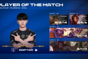 體育資訊2月15日訊 BFX打野選手Raptor四局合砍10/9/44的戰(zhàn)績,拿下BFX對陣T1系列賽MVP。