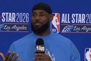 體育資訊2月16日訊 今日,湖人球星詹姆斯舉行了全明星新聞發(fā)布會(huì)。