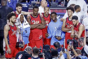 體育資訊2月16日訊 NBA全明星正賽決賽,美國新星隊47-21擊敗美國星條隊,奪得冠軍。