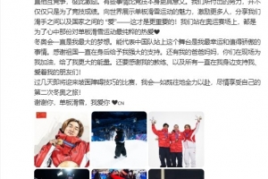 過(guò)幾天即將迎來(lái)坡面障礙技巧的比賽,我會(huì)一如既往地全力以赴,盡情享受自己的第二次冬奧之旅!