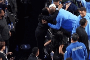 ESPN洛杉磯分部官方Instagram曬出一段現(xiàn)場(chǎng)花絮,賽前美國(guó)星條隊(duì)球星詹姆斯在場(chǎng)邊深情擁抱了自己的母親格洛麗亞。