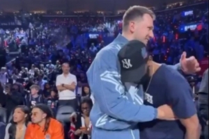 GIF-東契奇和歐文在場邊寒暄擁抱