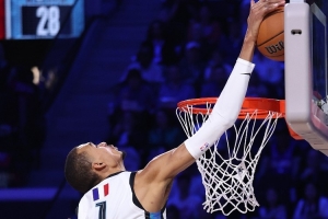 本次全明星賽,文班亞馬出戰(zhàn)2場(chǎng),分別得到14分6籃板3蓋帽、19分2籃板。