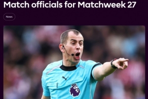 英超第27輪各場裁判: