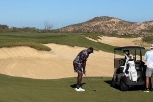 詹姆斯曬出了他在外打高爾夫的照片。