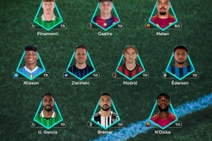 意甲第25輪最佳陣:奧代羅(克雷莫內(nèi)塞);烏利塞斯·加西亞(薩索洛)、布雷默(尤文)、恩迪卡(羅馬);阿利森·桑托斯(那不勒斯)、澤林斯基(國米)、莫德里奇(米蘭)、埃德森(亞特蘭大);皮納蒙蒂(薩索洛)、卡斯特羅(博洛尼亞)、馬倫(羅馬)