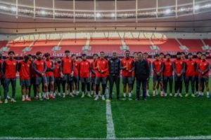 據(jù)海港俱樂(lè)部官方報(bào)道,海港俱樂(lè)部黨總支書(shū)記、總經(jīng)理沙良昌在訓(xùn)練前為維塔爾、萊昂納多頒發(fā)上賽季中超最佳陣容獎(jiǎng)杯。