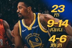 本場比賽,勇士球員梅爾頓,他替補出戰(zhàn)僅18分鐘,14中9,三分6中4,罰球1中1怒轟23分2籃板1助攻,正負(fù)值+20!