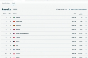 冬奧越野滑雪女團短距離自由式比賽,中國隊名列第15