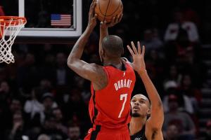 他這樣說道:“KD,肯定是他,SGA差得遠呢。我這么說是因為KD有2米13高,你看他能在文班亞馬頭上投中距離,他可以無視文班。他可以不在乎防守人,不在乎協(xié)防。不過,SGA也真的很特別?!?/p>